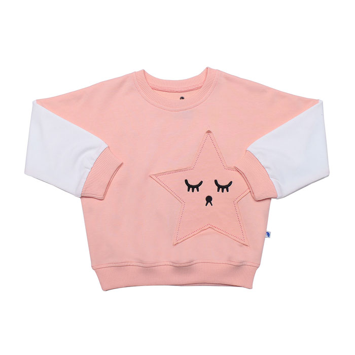 - Hình trang trí trên chiếc áo có in hình sao ngộ nghĩnh dễ thương mang lại điểm nhấn cho bộ quần áo.